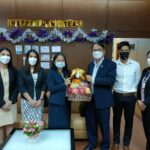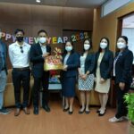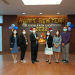 เมื่อวันที่ 6 และ 7 มกราคม 2565 เวลา 09.00 น. สถาบันภาษา มหาวิทยาลัยขอนแก่น นำโดย รศ.ดร.อังคณา ทองพูน พัฒนศร รักษาการแทนผู้อำนวยการสถาบันภาษา พร้อมผู้ช่วยผู้อำนวยการ หัวหน้างานและบุคลากรสถาบันภาษา เข้าพบ รศ.ดร.ชาญชัย พานทองวิริยะกุล อธิการบดี เพื่อมอบกระเช้าสวัสดีปีใหม่และขอพรจากอธิการบดีเนื่องในโอกาสวันขึ้นปีใหม่ พร้อมกันนี้สถาบันภาษาได้เข้าเยี่ยมคาราวะและขอพรปีใหม่จากคณะผู้บริหารมหาวิทยาลัยขอนแก่นประกอบด้วย รองอธิการบดีฝ่ายการศึกษาและบริการวิชาการ ผู้ช่วยอธิการบดีฝ่ายการศึกษาและบริการวิชาการ รองอธิการบดีฝ่ายบริหาร รองอธิการบดีฝ่ายทรัพยากรบุคคล รองอธิการบดีฝ่ายดิจิทัล และ ผศ.วรลาภ แสงวัฒนะชัย อดีตผู้อำนวยการสถาบันภาษา ในโอกาสนี้ตัวแทนอาจารย์และบุคลากรสถาบันภาษามอบกระเช้าสวัสดีปีใหม่แด่ รศ.ดร.อังคณา ทองพูน พัฒนศร รักษาการแทนผู้อำนวยการสถาบันภาษา