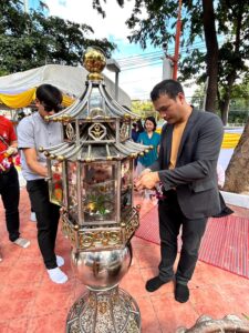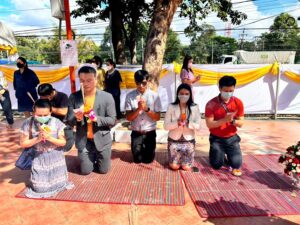 เมื่อวันที่ 14 พฤศจิกายน 2565 เวลา 09.00 น. สถาบันภาษา นำโดย รศ.ดร.อังคณา ทองพูน พัฒนศร รักษาการแทนผู้อำนวยการสถาบันภาษา กล่าวเปิดการประชุมชี้แจงและถ่ายทอดแผนการปฏิบัติการ ประจำปีงบประมาณ 2566 ณ ห้อง GL 123 อาคารพจน์ สารสิน โดยมีวัตถุประสงค์เพื่อการชี้แจง และถ่ายทอดแผนปฏิบัติการให้กับอาจารย์ บุคลากร เกิดการรับทราบและนำไปปฏิบัติในระดับรายบุคคลอย่างทั่วถึง และในเวลา 13.00 น. ผู้อำนวยการสถาบันภาษา คณาอาจารย์และบุคลากรได้ร่วมไหว้บวงสรวงศาลเจ้าพ่อมอดินแดงเพื่อเป็นสิริมงคลแก่บุคลากรทุกคน และเพื่อการปฏิบัติงานได้สำเร็จราบรื่นต่อไป