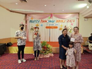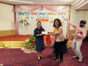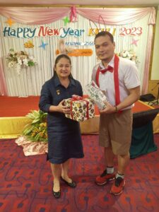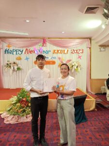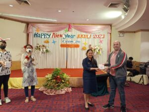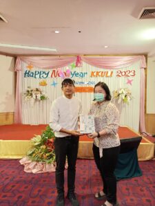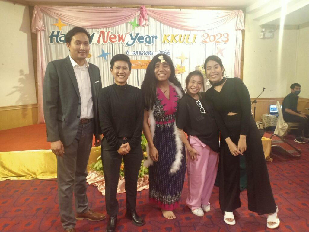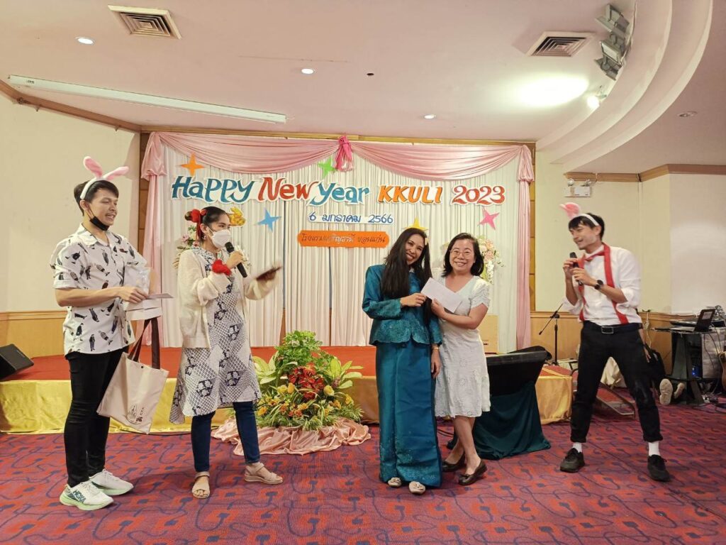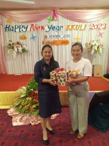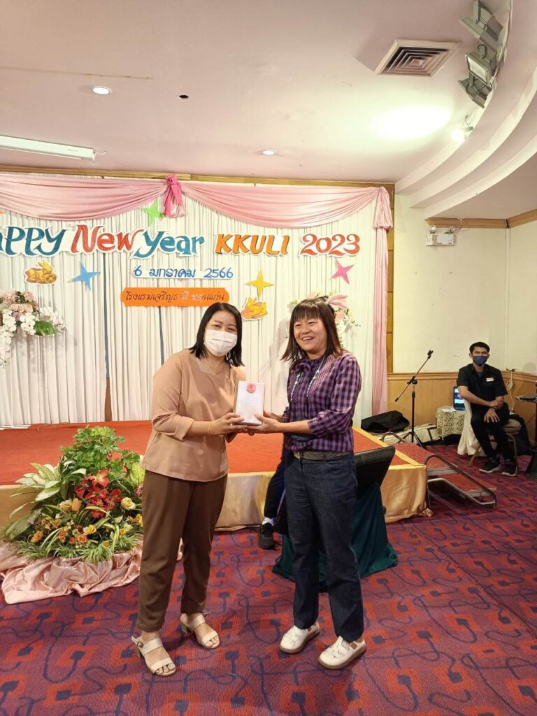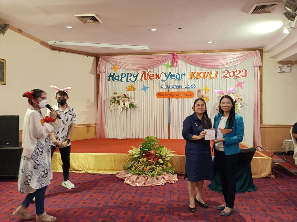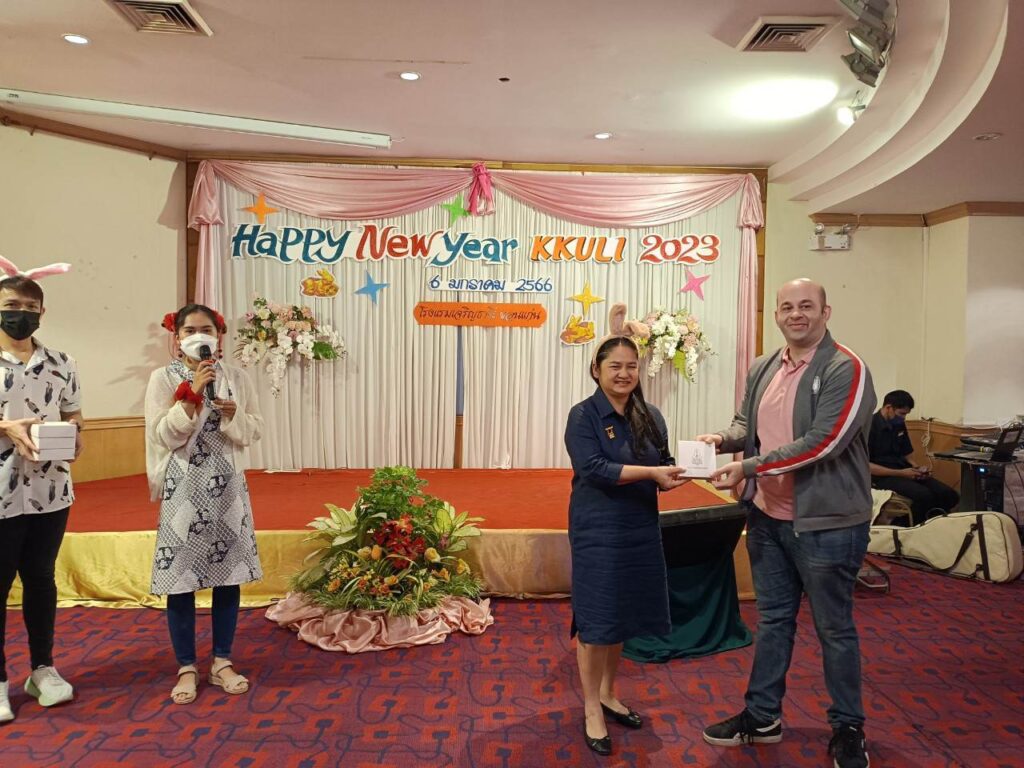 เมื่อวันที่ 6 มกราคม 2566 เวลา 19.00 น. สถาบันภาษา มหาวิทยาลัยขอนแก่น นำโดย รศ.ดร.อังคณา ทองพูน พัฒนศร รักษาการแทนผู้อำนวยการสถาบันภาษา พร้อมด้วยผู้บริหาร อาจารย์ประจำ อาจารย์พิเศษและบุคลากรสถาบันภาษา เข้าร่วมงานปีใหม่สถาบันภาษา ในโอกาสนี้สถาบันภาษามอบกระเช้าสวัสดีปีใหม่และขอพรจาก ผศ. วรลาภ แสงวัฒนะชัย อดีตผู้อำนวยการสถาบันภาษา พร้อมกันนี้ผู้ช่วยผู้อำนวยการและบุคลากรสถาบันภาษา มอบกระเช้าสวัสดีปีใหม่และขอพรจาก รศ.ดร.อังคณา ทองพูน พัฒนศร รักษาการแทนผู้อำนวยการสถาบันภาษา และรับประทานอาหารร่วมกันพร้อมด้วยการจับสลากมอบของขวัญจากสถาบันภาษาและแลกของขวัญระหว่างกัน บรรยากาศในงานเต็มไปด้วยความอบอุ่นและความสุข