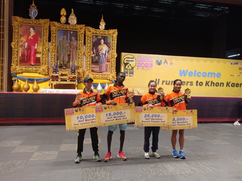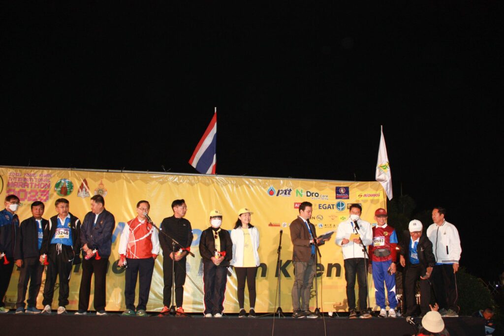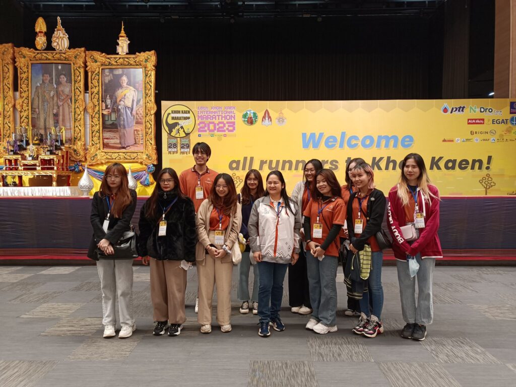 เมื่อวันที่ 29 มกราคม 2566 เวลา 02.00 น. สถาบันภาษา นำโดย รศ.ดร. อังคณา ทองพูน พัฒนศร รักษาการแทนผู้อำนวยการสถาบันภาษา พร้อมด้วยอาจารย์ และบุคลากร ร่วมกับฝ่ายการศึกษาและบริการวิชาการ ได้ร่วมดำเนินงานคณะอนุกรรมการฝ่ายพิธีการงาน Khon Kaen International Marathon 2023 โดยในปีนี้สถาบันภาษาได้ร่วมดำเนินงานคณะอนุกรรมการฝ่ายพิธีการด้านพิธีกรภาษาต่างประเทศในพิธีปล่อยตัวนักวิ่งและพิธีมอบถ้วยรางวัลพระราชทานสำหรับนักวิ่งประเภทต่าง ๆ และดูแลการลงทะเบียนรับรองแขกผู้มีเกียรติภายในจังหวัดและมหาวิทยาลัยที่เข้าร่วมงานมอบรางวัล และการลงทะเบียนนักกีฬาที่จะเข้ารับรางวัลรวมถึงการจัดลำดับการขึ้นรับรางวัลประเภทต่าง ๆ โดยบรรยากาศในงานเต็มไปด้วยรอยยิ้มเสียงหัวเราะของนักวิ่ง ที่เข้ามารับรางวัลซึ่งเป็นภาพบรรยากาศแห่งความภาคภูมิใจ โดยการจัดงาน Khon Kaen International Marathon 2023 ในครั้งนี้ได้รับความร่วมมือจากทุกฝ่ายเป็นอย่างดี จึงทำให้การจัดงานสำเร็จเรียบร้อยทุกประการ