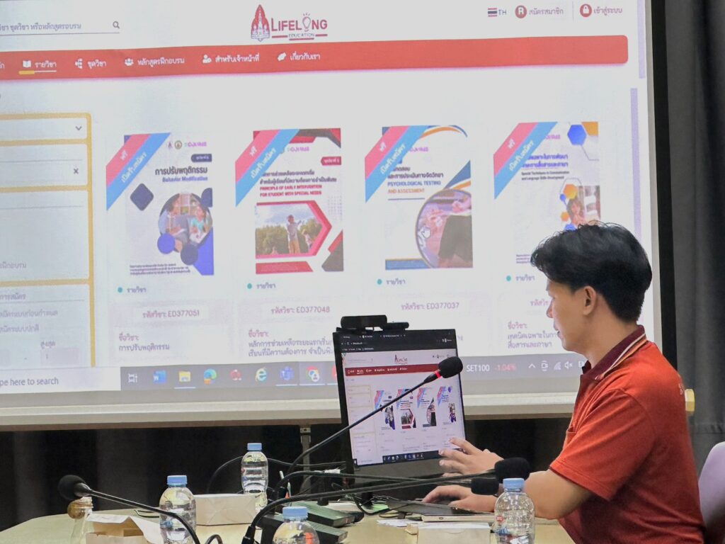 โดย รศ.น.สพ.ดร.ชูชาติ กมลเลิศ ผู้อำนวยการสำนักบริการวิชาการ พร้อมด้วย รศ.น.สพ.ดร.สุวิทย์ อุปสัย รองผู้อำนวยการฝ่ายวิชาการ และบุคลากรสำนักบริการวิชาการ ชี้แจงแนวทางและข้อเสนอแนะในการเตรียมความพร้อมเพื่อจัดทำหลักสูตร Lifelong Education และหลักสูตรระยะสั้น สำหรับนักเรียน นักศึกษา หรือผู้ที่สนใจ เพื่อเป็นแนวทางให้ทางสถาบันภาษาดำเนินการจัดทำหลักสูตรการศึกษาตลอดชีวิต (KKU Lifelong Education) ได้อย่างมีประสิทธิภาพ