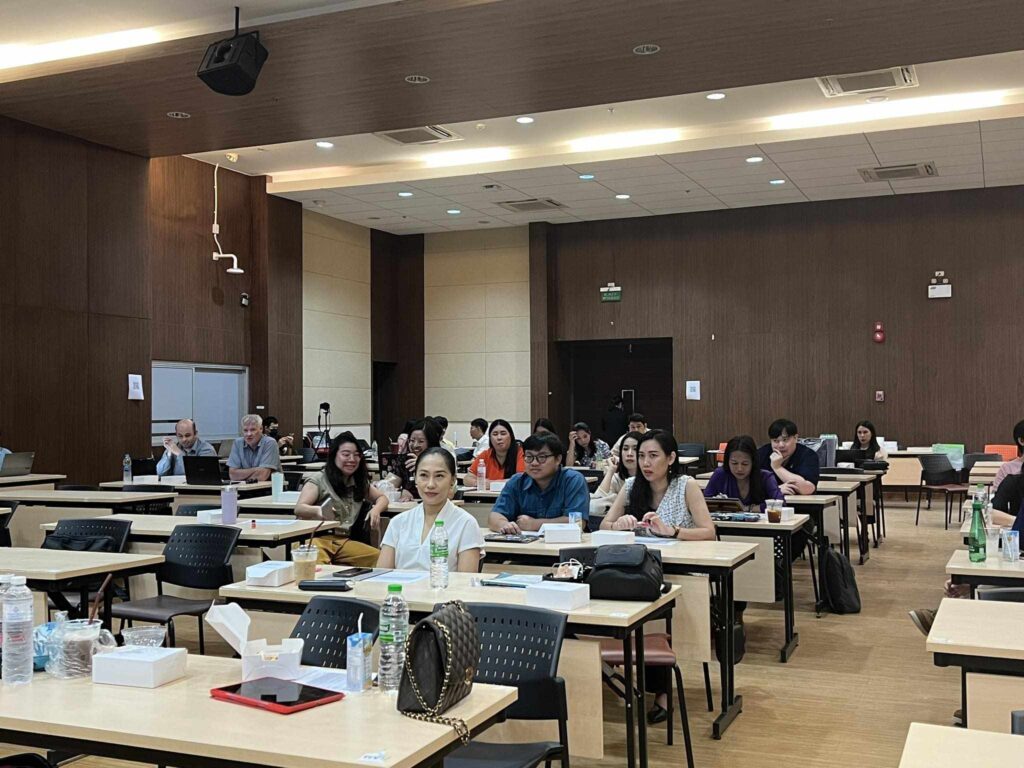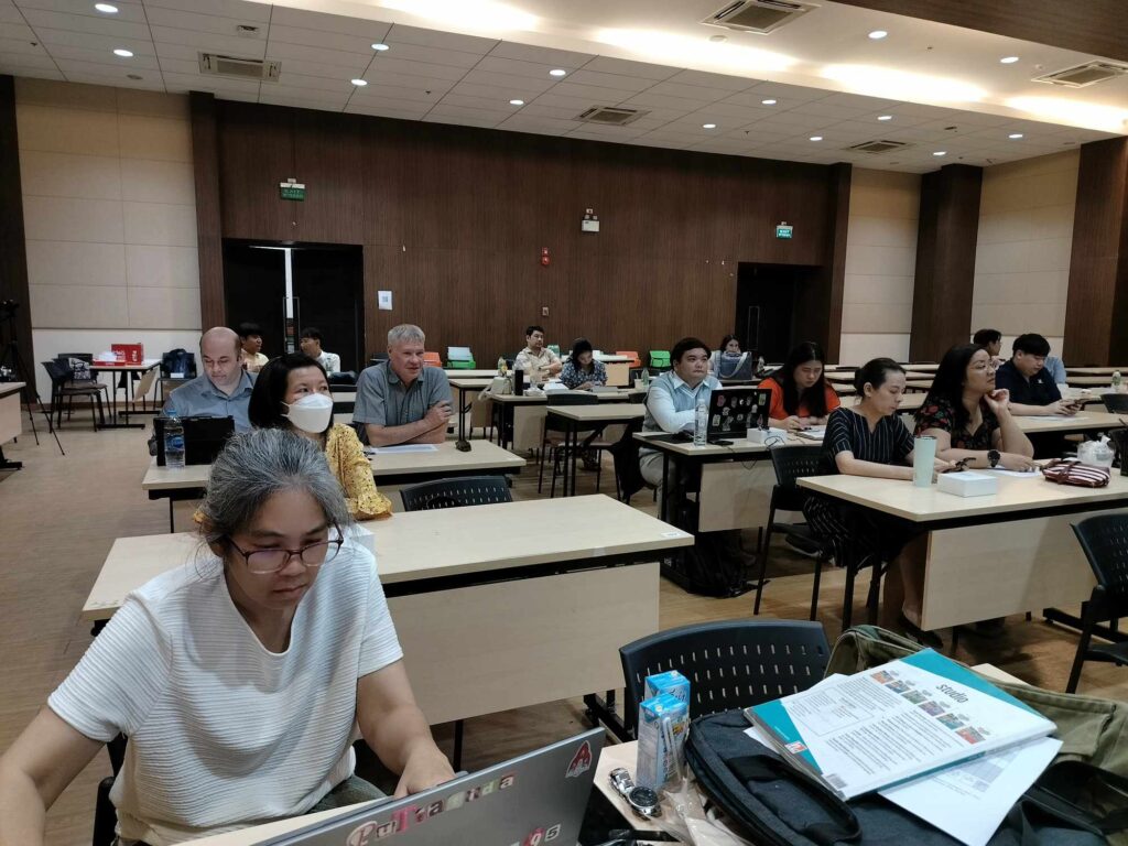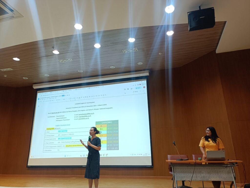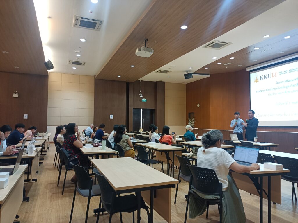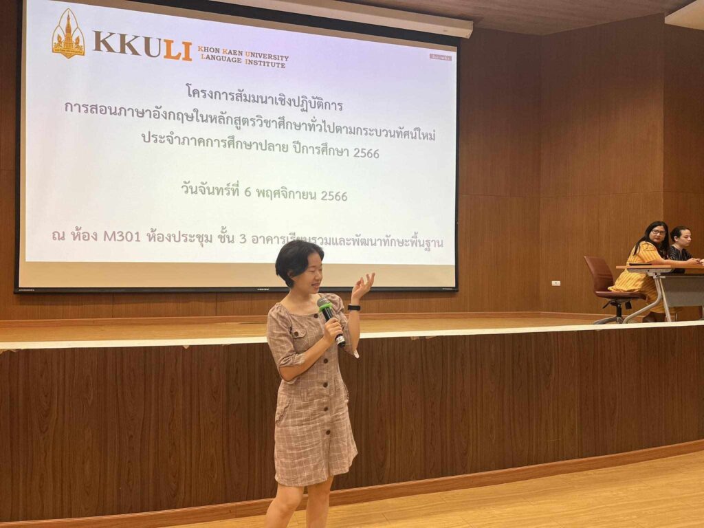 เมื่อวันที่ 6 พฤศจิกายน 2566 เวลา 08.30-16.30 น. ณ ห้องประชุม M301 อาคารเรียนรวมและพัฒนาทักษะพื้นฐาน สถาบันภาษา นำโดย ดร. วรชัย เพียทา รักษาการแทนรองผู้อำนวยการสถาบันภาษาฝ่ายบริหารและบริการวิชาการ พร้อมด้วยคณาจารย์ จัดโครงการสัมมนาเชิงปฏิบัติการ การสอนภาษาอังกฤษในหลักสูตรวิชาศึกษาทั่วไปตามกระบวนทัศน์ใหม่ สำหรับภาคการศึกษาปลาย ปีการศึกษา 2566 โดยมีอาจารย์ประจำและอาจารย์พิเศษ และคณาจารย์จากคณะสหวิทยาการ (วิทยาเขตหนองคาย) ทั้งชาวไทยและชาวต่างประเทศ เข้าร่วมการโครงการเตรียมความพร้อม เพื่อพัฒนาผู้สอนรายวิชาภาษาอังกฤษของสถาบันภาษาให้มีความพร้อมก่อนการเปิดภาคการศึกษา ซึ่งสามารถจัดการเรียนการสอนได้อย่างเป็นระบบเน้นกระบวนการสื่อสารได้การจัดกิจกรรมการเรียนการสอนภาษาอังกฤษโดยใช้ Active Learning การแลกเปลี่ยนความรู้ร่วมกัน โดยคณาจารย์ได้ระดมความคิดเห็นเกี่ยวกับการเรียนการสอนและสร้างความร่วมมือด้านการพัฒนาการเรียนการสอนต่อไปในอนาคต รวมถึงการสนับสนุนการจัดการเรียนการสอนและส่งเสริมการพัฒนาความสามารถทางภาษาอังกฤษของผู้เรียนอย่างมีประสิทธิภาพด้านต่างๆ ที่เกี่ยวข้องต่อไป