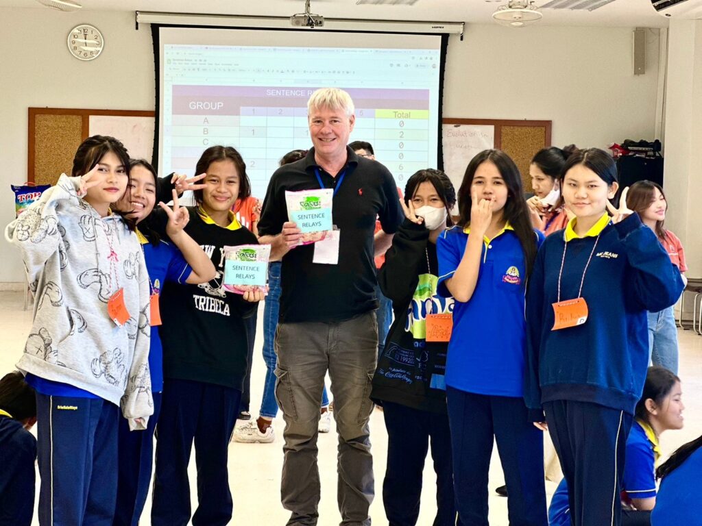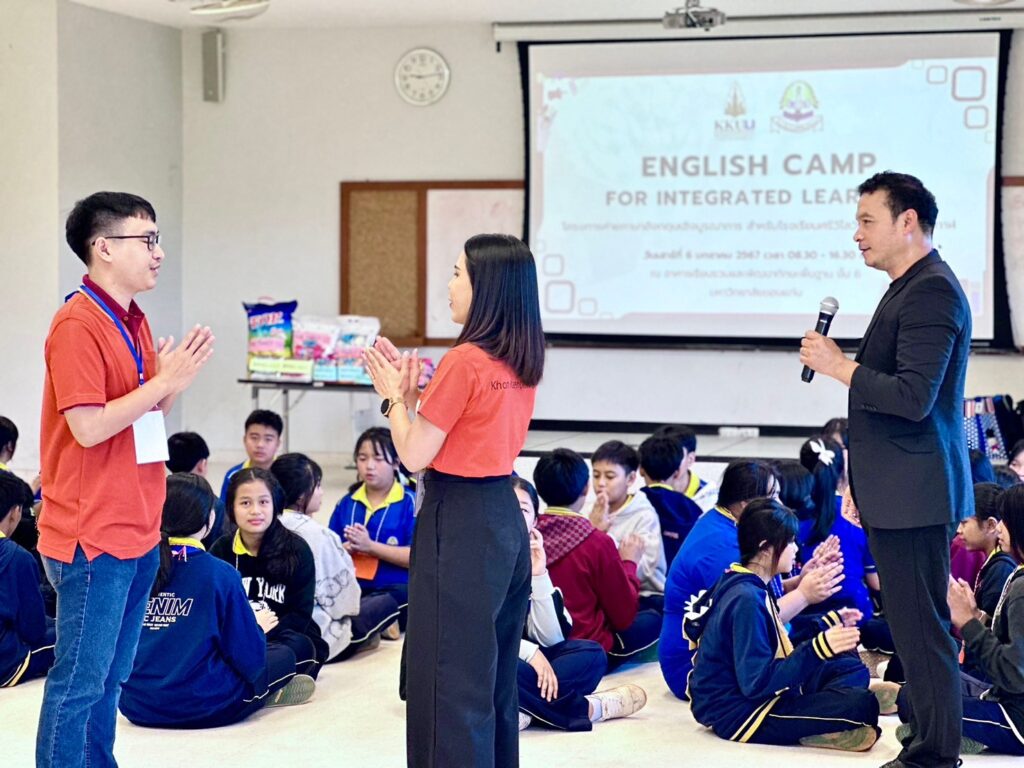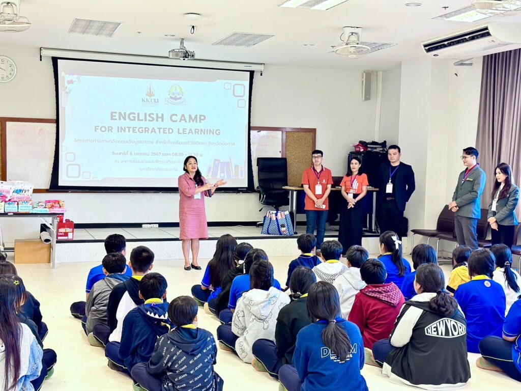 เมื่อวันเสาร์ที่ 6 มกราคม 2567 รศ.ดร.อังคณา ทองพูน พัฒนศร รักษาการแทนผู้อำนวยการสถาบันภาษา พร้อมด้วย ดร.วรชัย เพียทา รักษาการแทนรองผู้อำนวยการสถาบันภาษา ฝ่ายบริหารและบริการวิชาการ และคณะวิทยากร จัดค่ายภาษาอังกฤษเชิงบูรณาการ สำหรับนักเรียนระดับชั้นมัธยมศึกษาปีที่ 1 หลักสูตร Intensive English Program (IEP) โรงเรียนศรีวิไลวิทยา จังหวัดบึงกาฬ ณ ห้อง W602 อาคารเรียนรวมและพัฒนาทักษะพื้นฐาน มหาวิทยาลัยขอนแก่น โดยจัดกิจกรรมแบบเชิงบูรณาการ เพื่อสร้างประสบการณ์ให้นักเรียนมีความเข้าใจในธรรมชาติและวัฒนธรรมของเจ้าของภาษา พร้อมทั้งส่งเสริมให้นักเรียนมีความมั่นใจในการใช้ภาษาอังกฤษ และสามารถใช้ภาษาอังกฤษในสถานการณ์ต่าง ๆ ได้อย่างมีประสิทธิภาพ