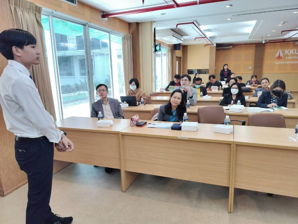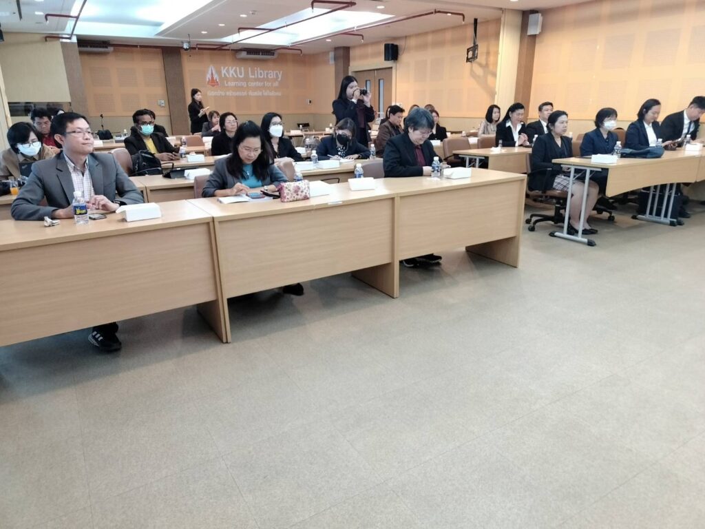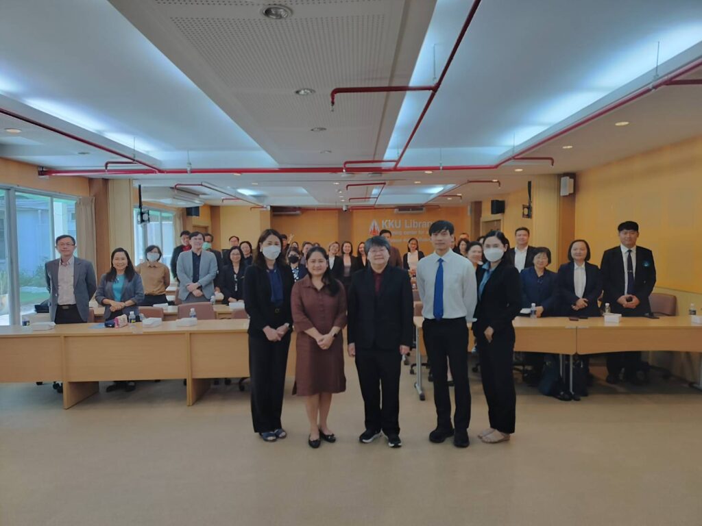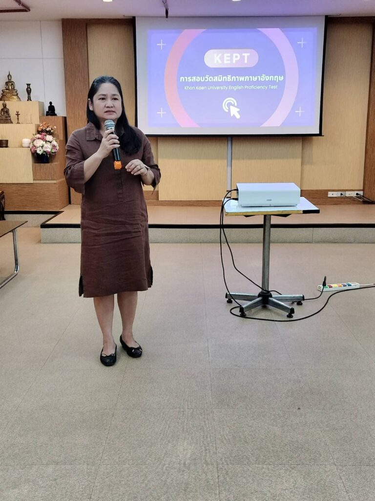 เมื่อวันที่ 15 กุมภาพันธ์ 2567 เวลา 10.00 น. สถาบันภาษา มหาวิทยาลัยขอนแก่น นำโดย รศ.ดร. อังคณา ทองพูน พัฒนศร รักษาการแทนผู้อำนวยการสถาบันภาษา พร้อมด้วยรักษาการแทนรองผู้อำนวยการ สถาบันภาษาฝ่ายศูนย์สอบภาษามาตรฐานและพัฒนานักศึกษาด้านสมรรถนะภาษาอังกฤษ และบุคลากร ร่วมต้อนรับคณะผู้บริหารจากมหาวิทยาลัยมหาสารคาม เนื่องในโอกาสเข้าศึกษาดูงานสถาบันภาษาด้านการจัดสอบ วัดสมิทธิภาพภาษาอังกฤษ (KEPT) เพื่อประกอบการยื่นสำเร็จการศึกษาระดับปริญญาตรี ณ ห้องประชุม ดอกคูณ ชั้น 1 สำนักหอสมุดมหาวิทยาลัยขอนแก่น