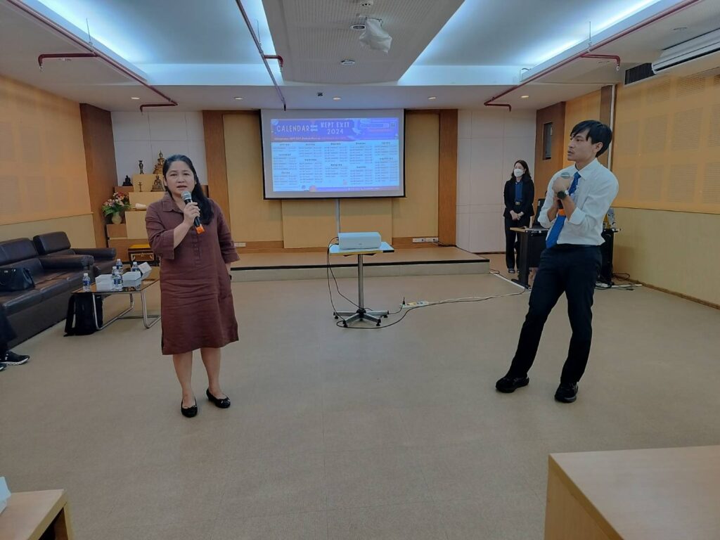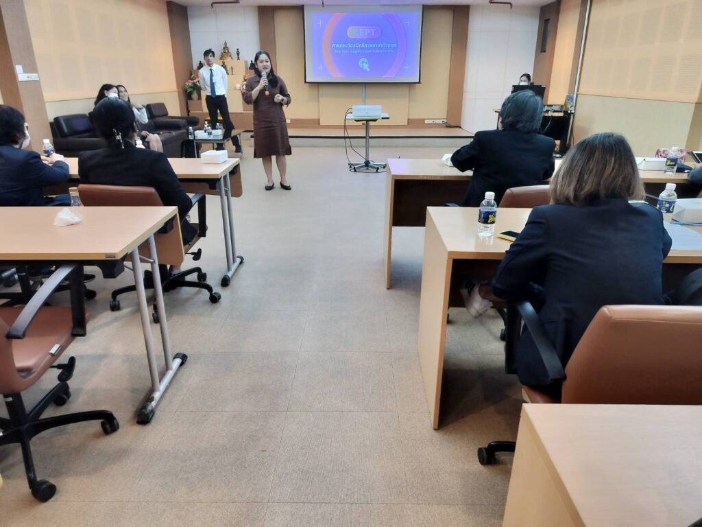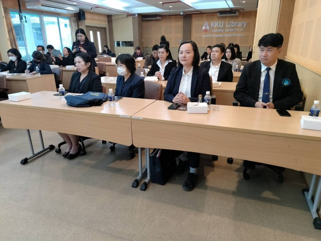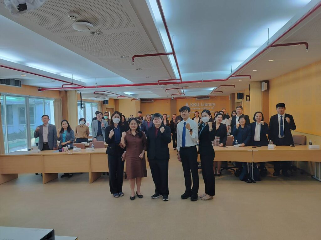 เมื่อวันที่ 15 กุมภาพันธ์ 2567 เวลา 10.00 น. สถาบันภาษา มหาวิทยาลัยขอนแก่น นำโดย รศ.ดร. อังคณา ทองพูน พัฒนศร รักษาการแทนผู้อำนวยการสถาบันภาษา พร้อมด้วยรักษาการแทนรองผู้อำนวยการ สถาบันภาษาฝ่ายศูนย์สอบภาษามาตรฐานและพัฒนานักศึกษาด้านสมรรถนะภาษาอังกฤษ และบุคลากร ร่วมต้อนรับคณะผู้บริหารจากมหาวิทยาลัยมหาสารคาม เนื่องในโอกาสเข้าศึกษาดูงานสถาบันภาษาด้านการจัดสอบ วัดสมิทธิภาพภาษาอังกฤษ (KEPT) เพื่อประกอบการยื่นสำเร็จการศึกษาระดับปริญญาตรี ณ ห้องประชุม ดอกคูณ ชั้น 1 สำนักหอสมุดมหาวิทยาลัยขอนแก่น