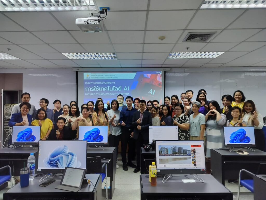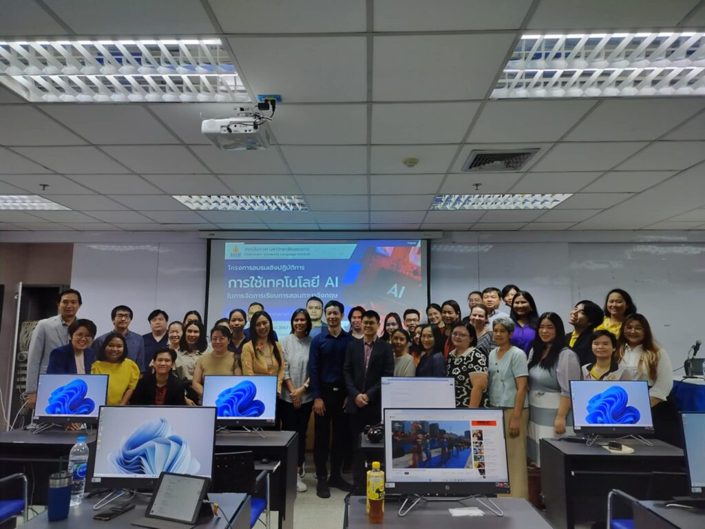 เมื่อวันที่ 5 สิงหาคม 2567 เวลา 09.00-16.30 น. สถาบันภาษา นำโดย อาจารย์ณัฐพล วรรณงาม รักษาการแทนรองผู้อำนวยการสถาบันภาษา ฝ่ายวิชาการ พร้อมผู้บริหารและคณาจารย์ เข้าร่วมโครงการอบรมเชิงปฏิบัติการ การใช้เทคโนโลยี AI โดยมหาวิทยาลัยขอนแก่นมีนโยบายส่งเสริมให้บูรณาการการใช้ AI Generative เข้ามาเป็น ส่วนหนึ่งในการจัดการเรียนการสอนภาษาอังกฤษ