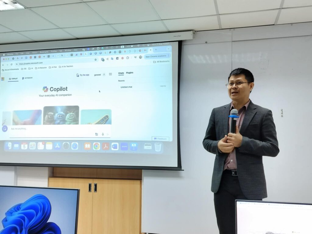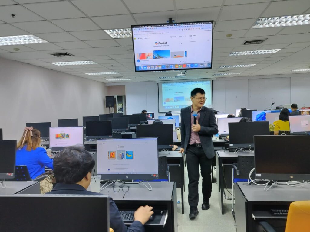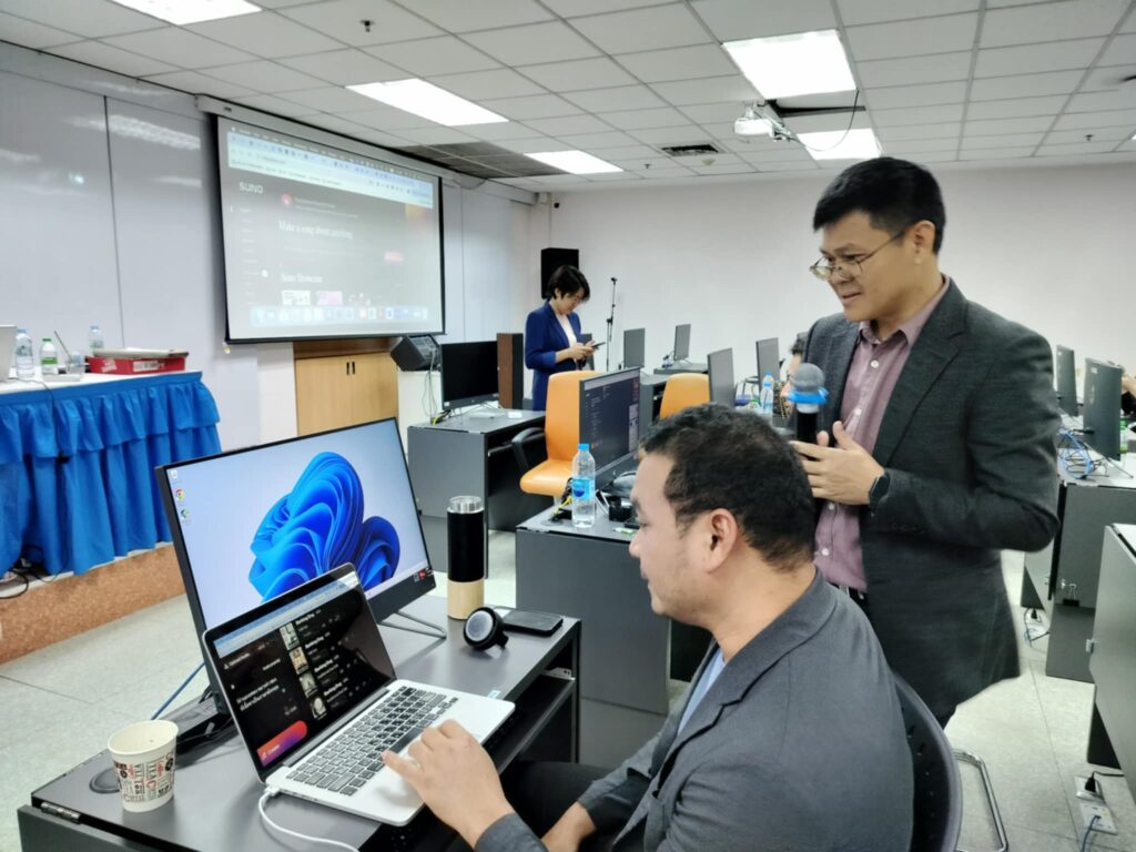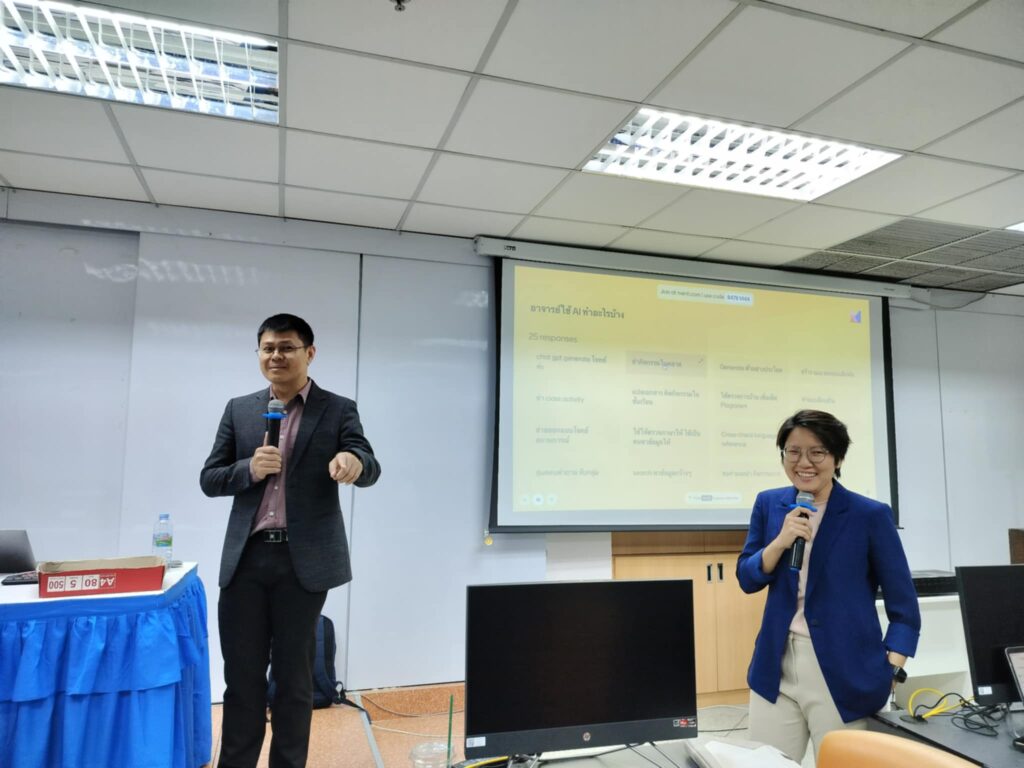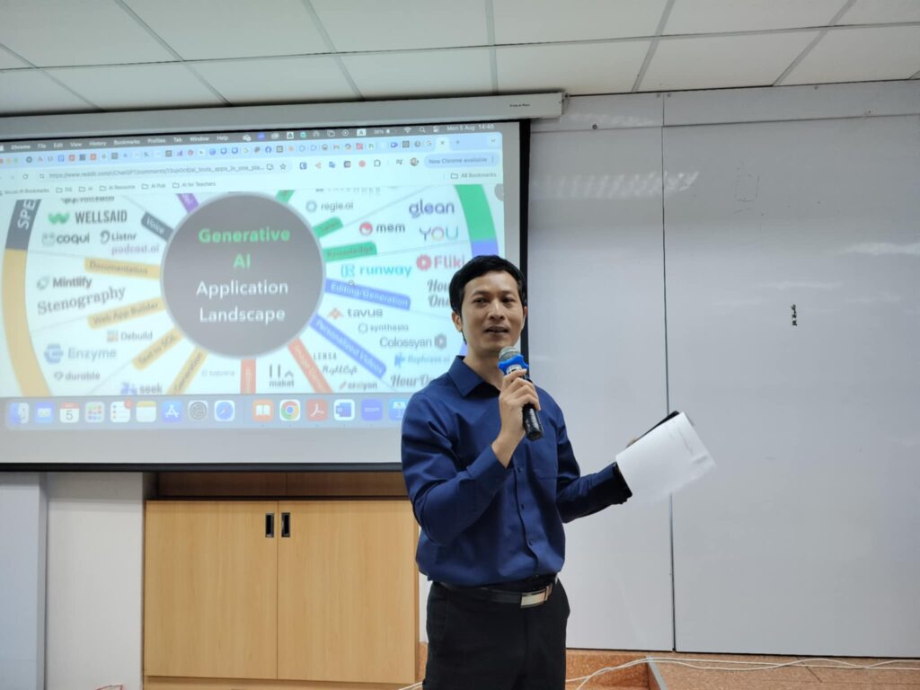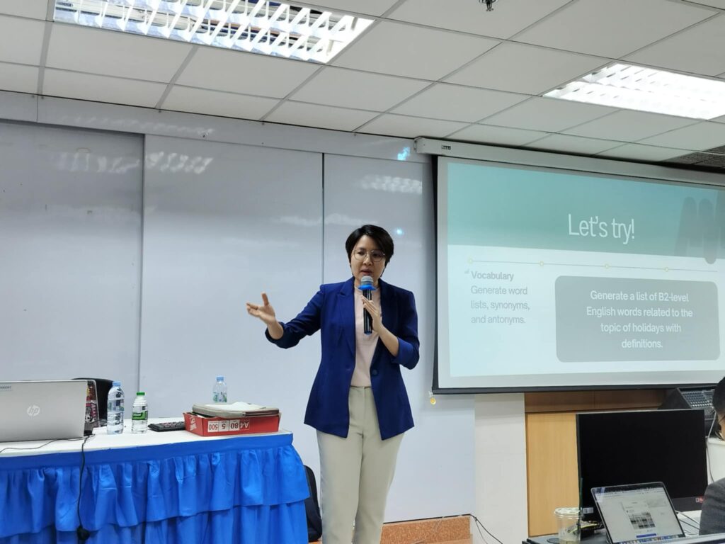 โดยการจัดอบรมในครั้งนี้ สถาบันภาษาได้รับเกียรติจากท่านวิทยากร ผู้ช่วยศาสตราจารย์ ดร. อนุชา โสมาบุตร ผู้ช่วยอธิการบดีฝ่ายการศึกษา และผู้ช่วยศาสตราจารย์พรพิสุทธิ์ ดวงเงิน เป็นผู้มาบรรยายให้ความรู้ในการใช้เทคโนโลยี AI Generative เข้ามาเป็นส่วนหนึ่งในการจัดการเรียนการสอนภาษาอังกฤษ สำหรับนักศึกษามหาวิทยาลัยขอนแก่นต่อไป