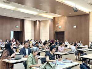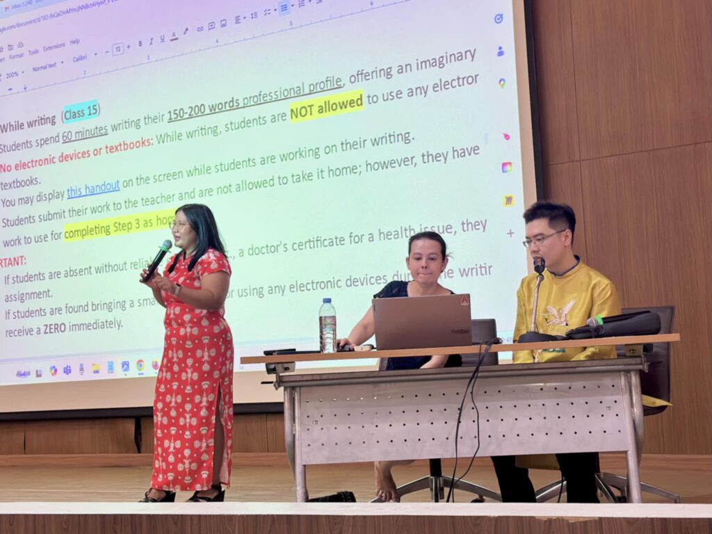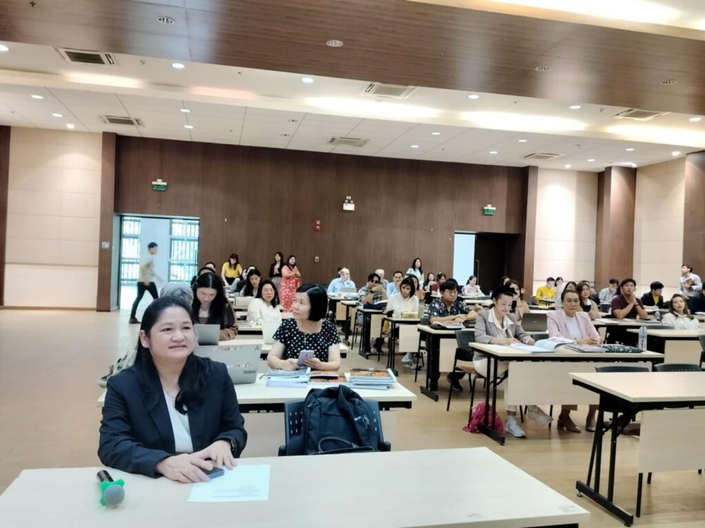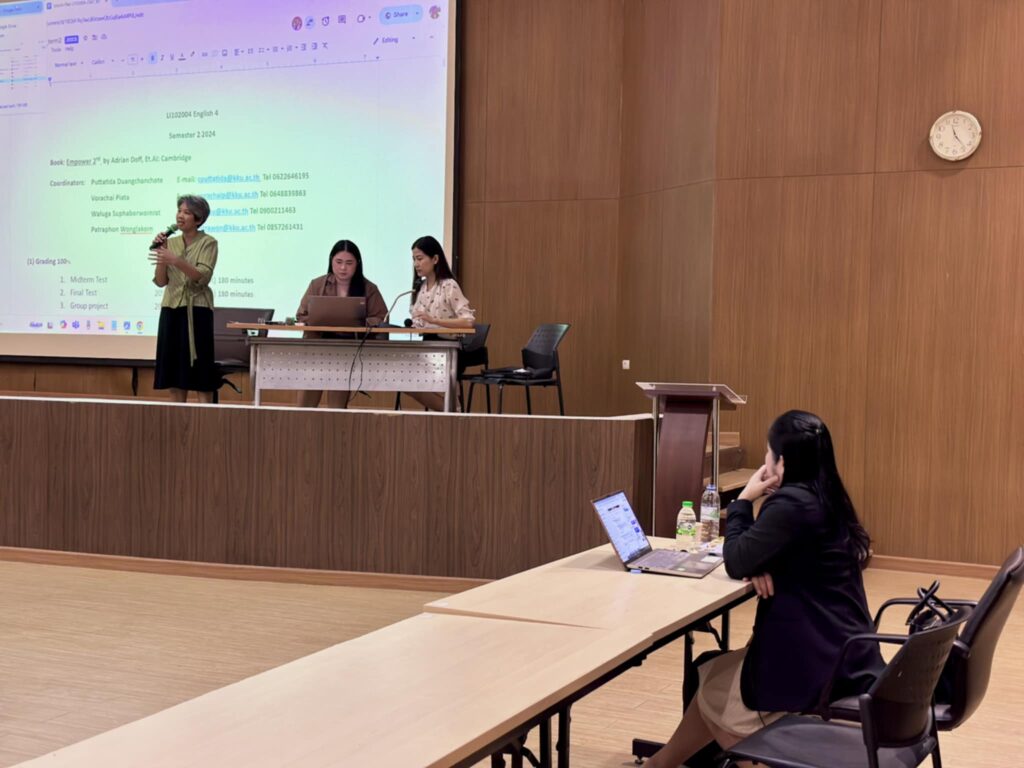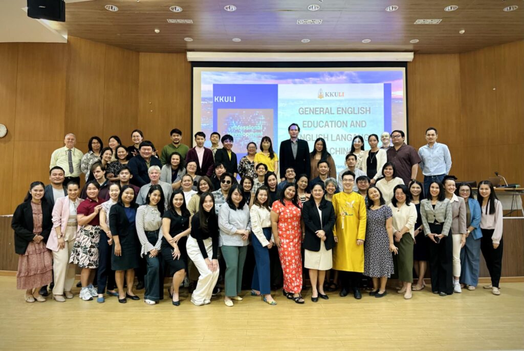 เมื่อวันที่ 11 พฤศจิกายน 2567 เวลา 08.30-16.30 น. สถาบันภาษา นำโดย รศ.ดร.อังคณา ทองพูน พัฒนศร รักษาการแทนผู้อำนวยการสถาบันภาษา พร้อมด้วยคณาจารย์ จัดโครงการอบรมเชิงปฏิบัติการ การพัฒนาการสอนภาษาอังกฤษตามกระบวนทัศน์ใหม่ ในหลักสูตรวิชาศึกษาทั่วไป สำหรับภาคการศึกษาปลาย ปีการศึกษา 2567 โดยมีอาจารย์ประจำและอาจารย์พิเศษ ทั้งชาวไทยและชาวต่างประเทศ และคณาจารย์จากคณะสหวิทยาการ (วิทยาเขตหนองคาย) เข้าร่วมการโครงการเตรียมความพร้อมเพื่อพัฒนาผู้สอนรายวิชาภาษาอังกฤษของสถาบันภาษาให้มีความพร้อมก่อนการเปิดภาคการศึกษาปลาย และการบรรยายการส่งเสริมการเรียนรู้และพัฒนาการใช้ภาษาอังกฤษด้วยเทคโนโลยีสมัยใหม่ และทักษะด้าน Generative AI พร้อมด้วยการชี้แจงการจัดการเรียนการสอนรายวิชาภาษาอังกฤษตามกระบวนทัศน์ใหม่โดยผู้ประสานงานรายวิชาต่างๆ และคณาจารย์ร่วมแลกเปลี่ยนความรู้เกี่ยวกับการเรียนการสอนในภาคการศึกษาที่ผ่านมา เพื่อสร้างความร่วมมือด้านการพัฒนาการเรียนการสอนต่อไปในอนาคต รวมถึงการสนับสนุนการจัดการเรียนการสอนและส่งเสริมการพัฒนาความสามารถทางภาษาอังกฤษของผู้เรียนอย่างมีประสิทธิภาพด้านต่างๆ ที่เกี่ยวข้องต่อไป