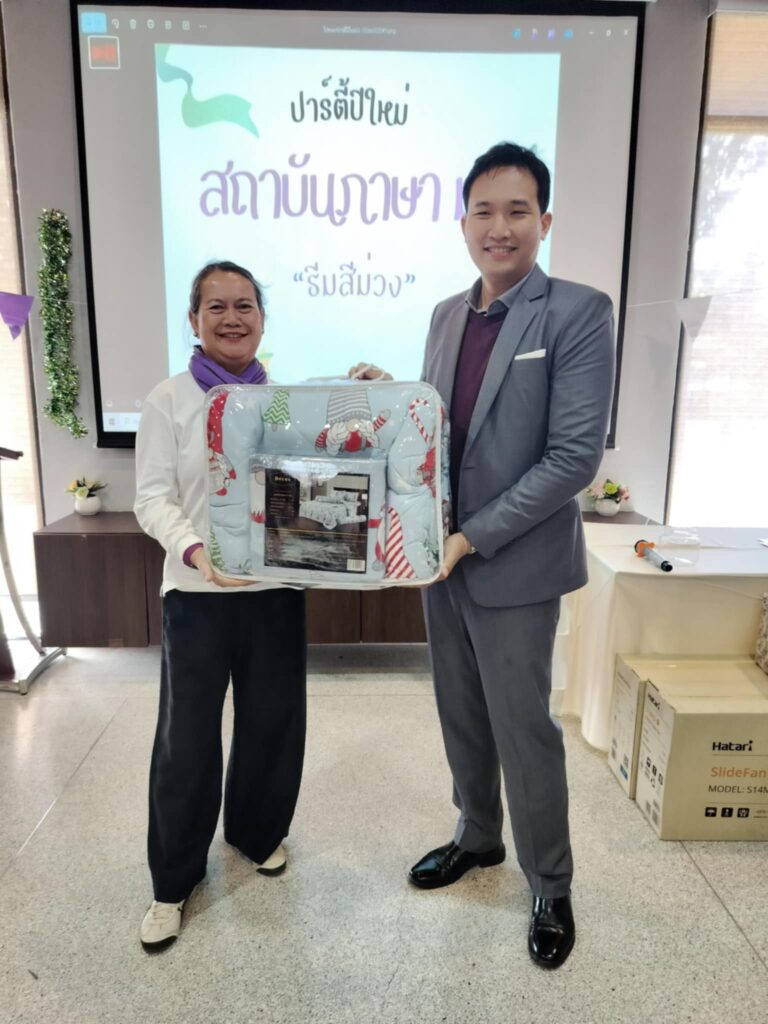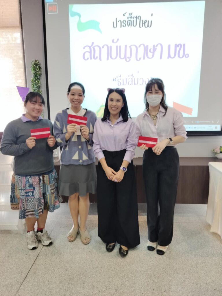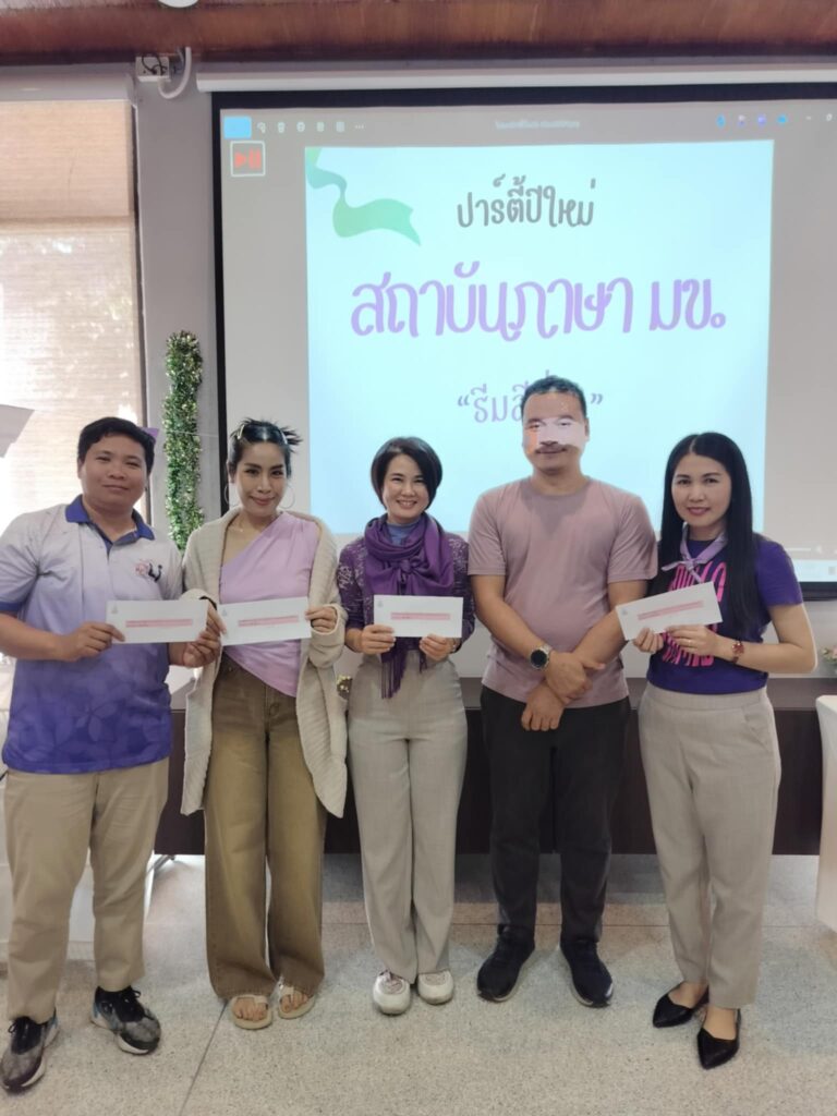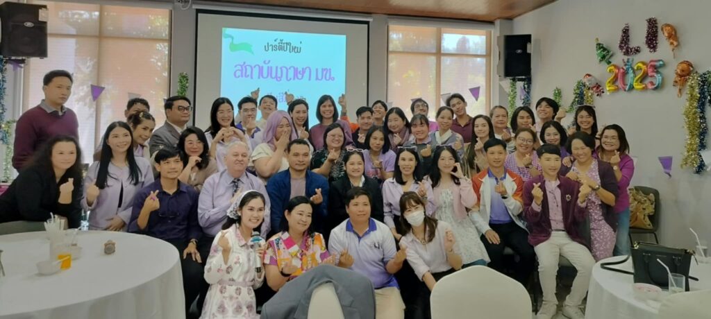 เมื่อวันที่ 17 มกราคม 2568 เวลา 12.00-16.30 น. สถาบันภาษา นำโดย รศ.ดร.อังคณา ทองพูน พัฒนศร ผู้อำนวยการสถาบันภาษา พร้อมด้วยผู้บริหาร คณาจารย์และบุคลากรสถาบันภาษา เข้าร่วมกิจกรรมปีใหม่ สถาบันภาษา ประจำปี 2568 ณ ห้องเจิมขวัญ โรงแรมบายาสิตา มหาวิทยาลัยขอนแก่น