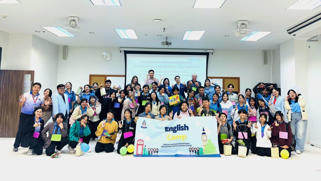 เมื่อวันเสาร์ที่ 25 มกราคม 2568 รศ.ดร.อังคณา ทองพูน พัฒนศร ผู้อำนวยการสถาบันภาษา มอบหมาย คณะอาจารย์สถาบันภาษาจัดกิจกรรมค่ายภาษาอังกฤษเชิงบูรณาการ สำหรับนักเรียนระดับชั้นมัธยมศึกษา โรงเรียนอุบลรัตน์พิทยาคม จังหวัดขอนแก่น ณ ห้อง W60-602 อาคารเรียนรวมและพัฒนาทักษะพื้นฐาน มหาวิทยาลัยขอนแก่น เพื่อพัฒนาภาษาอังกฤษผ่านกิจกรรมแบบเชิงบูรณาการ โดยส่งเสริมให้นักเรียนมีความมั่นใจในการใช้ภาษาอังกฤษ และสามารถใช้ภาษาอังกฤษในสถานการณ์ต่าง ๆ ได้อย่างมีประสิทธิภาพ พร้อมทั้งสร้างประสบการณ์ให้นักเรียนมีความเข้าใจในธรรมชาติและวัฒนธรรมของเจ้าของภาษา
