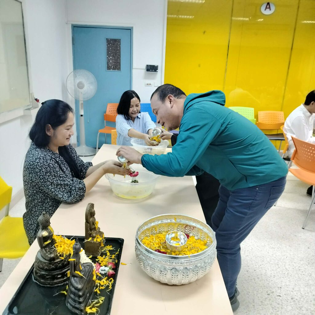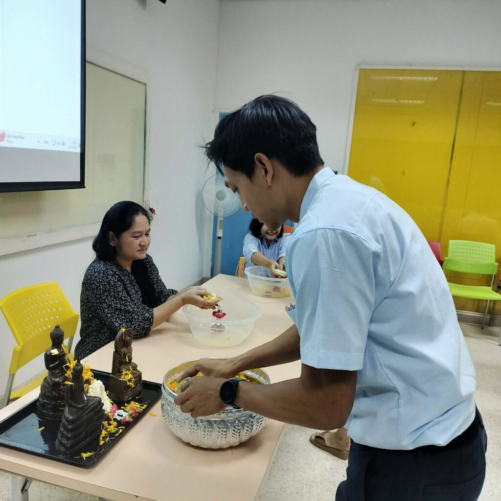 เมื่อวันที่ 9 เมษายน 2568 เวลา 09.00 น. สถาบันภาษา นำโดย ดร.วรชัย เพียทา รองผู้อำนวยการสถาบันภาษา ฝ่ายบริหารและบริการวิชาการ พร้อมด้วยผู้บริหาร คณาจารย์และบุคลากร ร่วมรดน้ำขอพรจากผู้อำนวยการสถาบันภาษา และอาจารย์อาวุโส เนื่องในเทศกาลสงกรานต์ ณ ห้องประชุม GL123 สถาบันภาษา อาคารพจน์ สารสิน