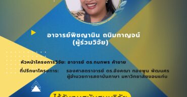 สถาบันภาษา มหาวิทยาลัยขอนแก่น ขอแสดงความยินดีกับ อาจารย์พิชญานิน ถนิมกาญจน์ (ผู้ร่วมวิจัย) ได้รับทุนสนับสนุนวิจัย
