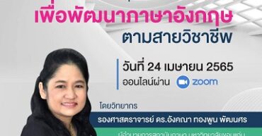 เมื่อวันที่ 24 เมษายน 2565 รองศาสตราจารย์ ดร.อังคณา ทองพูน พัฒนศร ผู้อำนวยการสถาบันภาษา เป็นวิทยากร การอบรมยกระดับคุณภาพนักศึกษาบัญชีเพื่อพัฒนาภาษาอังกฤษ ผ่านระบบประชุมออนไลน์