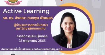 เมื่อวันที่ 25 พฤษภาคม 2565 รองศาสตราจารย์ ดร.อังคณา ทองพูน พัฒนศร ผู้อำนวยการสถาบันภาษา เป็นวิทยากรในการอบรม การจัดการเรียนรู้เชิงรุก ผ่านสื่อประชุมออนไลน์ (zoom meeting) ณ สำนักงานเขตพื้นที่การศึกษาประถมศึกษาหนองบัวลำภู เขต 2