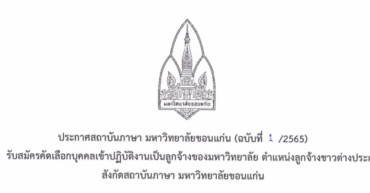 ประกาศสถาบันภาษา มหาวิทยาลัยขอนแก่น รับสมัครคัดเลือกบุคคลเข้าปฏิบัติงานเป็นลูกจ้างของมหาวิทยาลัย ตำแหน่งจ้างชาวต่างประเทศ สังกัดสถาบันภาษา มหาวิทยาลัยขอนแก่น