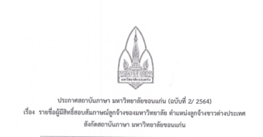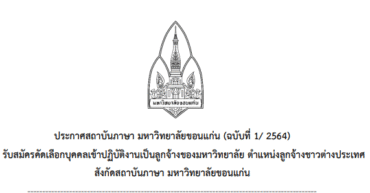 รับสมัครคัดเลือกบุคคลเข้าปฏิบัติงานเป็นลูกจ้างของมหาวิทยาลัย ตำแหน่งลูกจ้างชาวต่างประเทศ สังกัดสถาบันภาษา มหาวิทยาลัยขอนแก่น ตาม ประกาศสถาบันภาษา มหาวิทยาลัยขอนแก่น (ฉบับที่1/ 2564) Recruiting people to work as employees of the university Position of foreign employees under the Language Institute of Khon Kaen University according to Announcement of Language Institute, Khon Kaen University (No. 1/ 2021)
