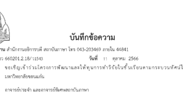 เรียน อาจารย์ประจำและอาจารย์พิเศษ ขอเชิญเข้าร่วมโครงการพัฒนาและให้ทุนการทำวิจัยในชั้นเรียนตามกระบวนทัศน์ใหม่ มหาวิทยาลัยขอนแก่น