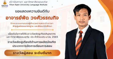 สถาบันภาษาขอแสดงความยินดี กับ อาจารย์พัด วงศ์วรรณกิจ เนื่องในโอกาสได้รับรางวัลเชิดชูเกียรติบุคลากรมหาวิทยาลัยขอนแก่น ประจำปีงบประมาณ 2565